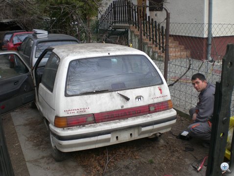 Szép lassan azért fejlődött is a kisautó: először kerestünk hozzá a garázsban erősebb rugókat - a 02-es BMW-jé pont öt centit emelt rajta, egy kukázott téli garnitúra éppen kapóra jött a gumizáshoz, a padláson meg találtunk egy valószínűleg Dacia fényszórót is, ami a tetőn, középen kapott helyet. Kezdik érezni: ez nem a pimp my ride. Ahogy hozzánk csapódott Imi, a csapat másik nagy Charade-mágusa, kezdtem kisebbségbe szorulni. Ugyan Márkot is nehezen lehetett meggyőzni egy-egy alkatrész cseréjének szükségességéről, de ha Imivel összezártak, már esélytelenül pattantam le a sorfalról. Hogy ne keltsem a majrés technáci benyomását, nem volt más választásom, mint alkalmazkodni. Elindultam lefelé a lejtőn, jöttek a motorolajjal feltöltött lengéscsillapítók, takonyágyúval gyártott sziloplaszt-tömítések, gyorskötözővel toldozott lökhárítók.
