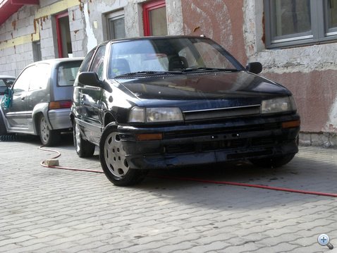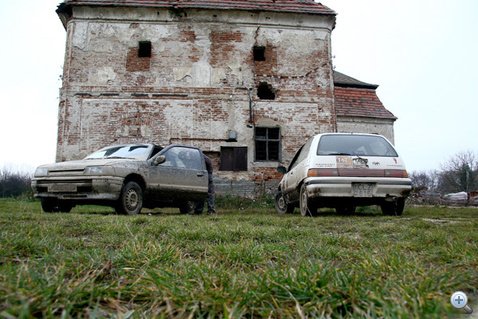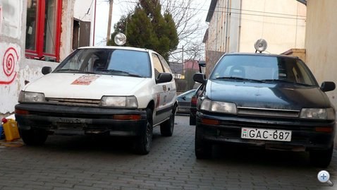 A következő futamra már a fehér Charade-dal mentünk. Nem hosszú elemzés és válogatás után jutottunk el a japán járműipar ékkövéhez - ez volt kéznél. Márknak ugyanis van egy kicsi, de annál színesebb gyűjteménye. Egy gyors mosás és félórányi noszogatás elég volt a pár éve pihenő autó felkészítéséhez - Csipkerózsika-álmából felébresztve még ki sem törölte a csipát a szeméből, már nyélgázon pattogott a magyar szavanna buckáin.