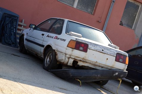Nem voltunk túlzottan optimisták, hiszen egy legalább hat éve helyben porladó autóról (a legendás ős-drifter, Chicken néhai verdája) beszélünk, ráadásul a nyolcvanas évekbeli japán autók azért iszonyatosan képesek rohadni, de egy maximálisan low-cost projekthez remek alany lesz: ha a motorja jó, akkor fillérekből megoldunk mindent, bízunk magunkban.
