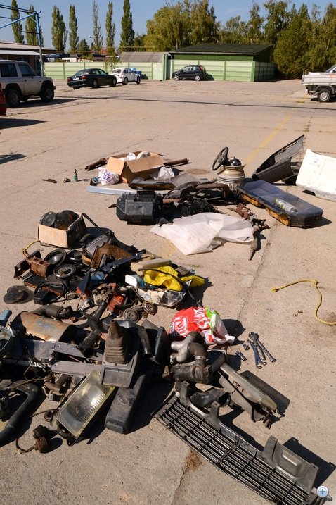 Nincs megoldhatatlan probléma, talán ezért sem borzasztott el minket a látvány, ami Sabc műhelyénél fogadott: egy alkalmi szemétdomb- és alkatrész-lerakat négy keréken, tele lyukkal. Gyorsan számba vettük, milyen apróságok hiányoznak (váltó, kuplungszerkezet, főfékhenger-vákuumdob, kardán, kormánymű, vízcsövek…) de Karotta megnyugtatott: a dolgok többsége régi pincéjében van, menjünk el értük, ott megtaláljuk, a váltó Tomitsunál Pestlőrincen. Ezt Bandi önfeláldozóan el is hozta, itt jegeltük a parkolóházban Árpád mozdulatlan motorja mellett.