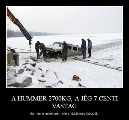 Akkor hívta segítségül a másik Hummert, aminek ekkor csak az egyik kereke szakadt be, de mivel megmozdulni nem tudott, ott kellett hagynia a terepjárót. Reggelre a második autó alatt is beszakadt a jég."