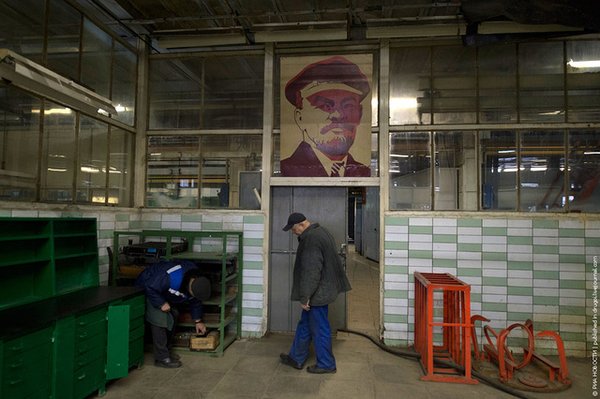 Egyébként a gyárra is. Ahogyan azt a legtöbb szocialista nagyüzemnél megszokhattuk, az igazgatói iroda, a dicsőségfal, a vitrinezett "Büszkeségeink" szoba és az oda vezető, fehérrel frissen festett kövekkel és gyanúsan élénken zöldellő fűvel szegélyezett úton kívül minden olyan nyomortelep-szerű. A valamikor Sztálin dicsőségét hirdető (ZiSz: Závod imenyi Sztáliná, kb. Sztálinról elnevezett Gyár) a nevét régi főkonstruktőréére, Lihacsovra cserélte, az általános képet azonban a korábbi névadóval jellemzett korszak jellemzi.