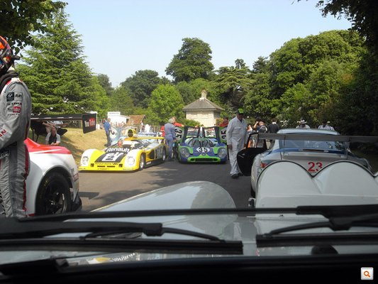 Nekem a várakozásból annyi jutott, hogy egy órán át nem tudtam dolgozni, mert vártam a hívó jelre (ezért sem fotóztam a pályaversenyautók paddockját, és ezért készült olyan kevés fotó a Cartier et Luxe teljesen eszement autóinak kiállításáról, a Hanna-Barbera rajzfilmautókról sem készült riport). Tehát vártam, idegesen villogó standby-leddel a homlokom közepén. Egy bő félnapos Goodwoodban hatvan perces helybetopi halálos kín. Ráadásul azt is tudtam, hogy négy órakor legkésőbb el kell hagynom a színteret, mert megy a repülőm a Heathrow-ról, és azt nem lenne tanácsos lekésnem. Ja, kábé negyven fok volt.