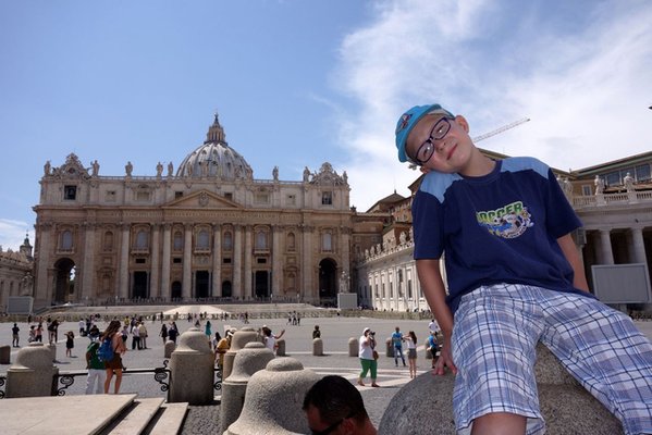 Délután azért megint csak a zónán kívül parkoltunk le, hogy bemetrózzunk a Vatikánba. A pisai, és sienai után beszereztem végre a római matricát is egy boltban, sőt, vettem egy Italiát is – ezek kellenek a kisautónak, olyanok, mint orosz katonatiszt mellyén a kitüntetések. A boltosnak mutattam a képet, mire lesz, mire mondta, hogy neki meg egy 1961-es 500-asa van, amit sokat használ, igaz, csak Olaszországban volt még vele. Pillanat alatt barátságot kötöttünk, szerintem a matricákat is olcsóbban adta.