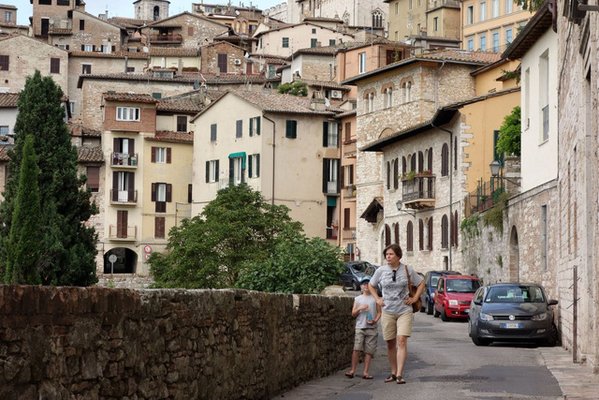 Perugia azonban minden hegymászást megért. Ez a sziklatetőre épült város más, mint a toszkán települések, ez sokkal inkább középkor, mint reneszánsz, ennek megfelelően komorabb is. A kocsit valahol a várfal aljában hagytunk, onnan indultunk fel, gyalog.