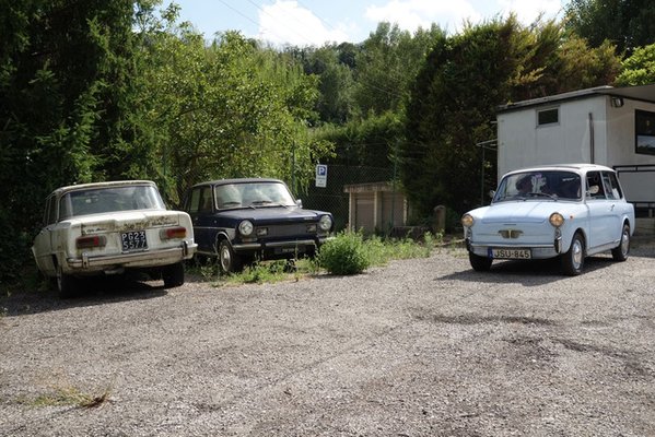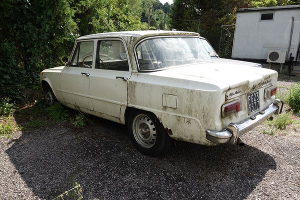 Kárpótolt ezért, hogy két veteránautót is találtam egy udvaron az út mentén, egy Simca 1100-ast egész jó állapotban és egy meglehetősen rozsdaette – szerintem menthetetlen – Alfa Giulia 1.3 Supert. Nem olyat, mint nekem volt, annál újabbat, már a négy fényszóróval elöl és a modernebb műszerfallal. Azzal a fekete rendszámmal, még halálában is vagány kiállásával annyira hozta azt a hangulatot, amik a Piedone-filmek sajátjai, hogy szinte fájt. Kár érte, basszus.