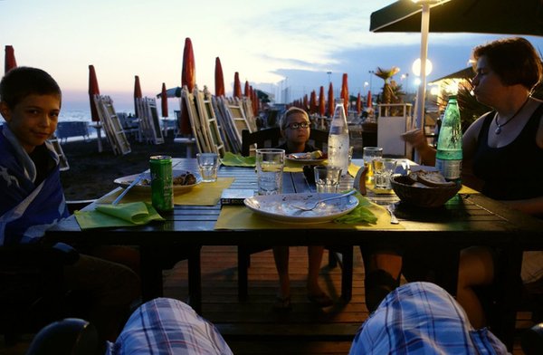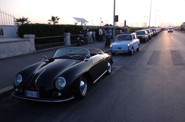 Utolsó esténk volt Rómában, s immár harmadszor is a tengerparti (konkrétan a strand homokján van) kajáldához hajtottunk, ahol isteniek a tészták. Utunk eddigi legcsodásabb veteránautójába botlottunk előtte: egy 1600 Super kivitelű (ez valamelyik erősebb változat, talán 90 lóerős), fekete, kabrió 356-os Porsche volt. Na, erre még nekem is ömlött a nyálam.