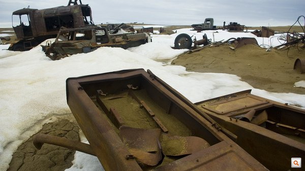 A képeket nézve nem kérdés, hogy jó néhány aranylánc kijönne a magára hagyott eszközökből, ám mielőtt előjönne az ilyenkor szokásos kánon, tegye mindenki helyre a fejében, hol is pihen ez a sok vas. Merthogy a Ferenc József-föld, Oroszország legészakibb szigetcsoportjainak egyike fogalmaink szerint élhetetlenül hideg. Az utóbbi harminc évben 13 celsiusnál nem mértek itt melegebbet, az évi középhőmérséklet mínusz 12,8 C fok. Nem meglepő, hogy a jegesmedvén és a rozmáron kívül alig él meg bármi erre; az ember nyoma zavartalanul pusztul a rozsdával áztatott homokban, a hideg pedig nem csak konzervál, de távol tartja a nyerészkedőket.