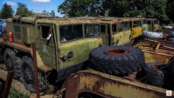 A fotókat egy orosz blogger, Vmulder csinálta még tavaly nyáron, de valamiért csak most tette fel blogjára, ahol egyébként a pusztulat visszatérő tematika. Vmulder egy kalinyingrádi bázison járt, annak is egy lerakatában, ahol mindenféle régi vasat fotózott, jellemzően szállítóplatformon tárolt MAZ-okat. A MAZ ugye a Minszkíj Avtomobilníj Závód, Fehéroroszország 1944 óta aktív járműgyára. Manapság a busz- és kamiongyártás az erőssége, de a posztszovjet országokban még most is inkább hidegháborús, soktengelyes tüzérségi teherszállítói miatt ismert.