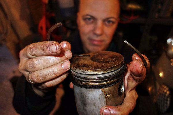 Mert két nappal később az egész hóbelevancot elvittem kedvenc Ernő bácsimhoz, az esztergályoshoz, aki látott már ezt-azt, hiszen lehúzott a Postaautónál pár évtizedet. Zsoltikám - kezdett neki a rossz hírnek a mérőórák tekergetése után - a négy dugattyúból háromnak gyári a mérete, az egyiknek viszont annyira megkopott a szoknyája, hogy ahelyett biztosan kell másik. A gyűrűhornyok is nagyon kopottak - a felső, 2 milliméteresek 4 mm-re vannak kiverődve, a 2,5-ösök 5-re, csak az olajlehúzó gyűrűk hornyai stimmelnek valamennyire.
