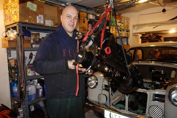 Az időpont ennél váratlanabbul jött. Egy vasárnap reggel rám csörgött - amikor egyébként már súlyos családi programot terveztünk - Dzsí, itt van nálam a Skodában a zsiráf, jövök befele, otthon vagy, mert bedobnám. Kértem egy órát, mondta, harap valamit, lefújtam a programot, mire odaért, már lebontottam az összes bovdent, vezetéket, csövet, szíjat a blokkról, a motortartó bak csavarjait és a váltó-motorblokk összefogó anyákat is nagyrészt kiszedtem.