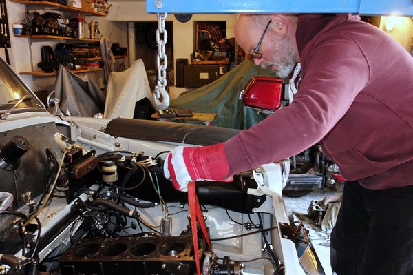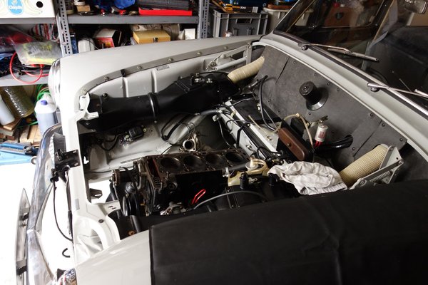 Csak aközben mondtam el neki, hogy az összes hozzáértő szerint lehetetlenség, amire készülünk, amikor már az ő keze is olajos volt. Azért volt ám egy vékony reménysugaram - sehol nem láttam megemlítve ugyanis azt a verziót, hogy valaki helyben leveszi a szelepfedelet és a hengerfejet (az alacsonyabbá lett blokk így már elférne az azon a szakaszon már erősen hátrafelé induló tűzfaltól, talán), majd lekapja az olajteknőt is a motor aljáról (amelynek a szakálla úgy már vélhetően nem akadna el a szűk futóműbölcső első peremében), és úgy manőverezi ki a maradékot a szűk helyről.