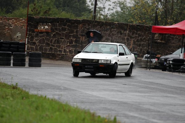 Nem voltunk sokan, talán 35 autó ha összejött, de ez egy pillanatig sem volt zavaró. Szása, a pálya mindenható ura is csak megvonta a vállát a maga szívbajos módján, és csak annyit mondott: esik ezeknek az eső.