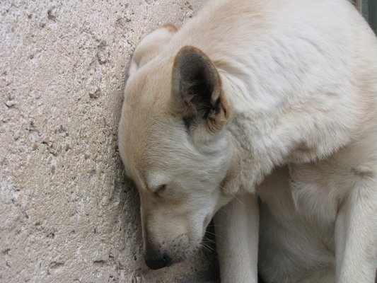 Teljes a kudarc. Korábban próbáltam minden trükköt, amit az internet népe csak javasolni tudott a problémakörre. Jancsika a citromlével bekenegetett fa tárgyaknál csak a csípős piri-piri szószba mártott botot nyalogatta szívesebben és nagyobb átéléssel. Amikor a UPC-kábelt rágta meg, betekertem a vezetéket szigetelőszalaggal, és kereskedelmi forgalomban kapható kutya távol tartóval sprickoltam le. Két perc múlva hunyorogva, átszellemült fejjel nyalogatta. Tényleg a séta hiánya miatt kezd el rágcsálni? Nem hiszem, séták után is volt rágás.