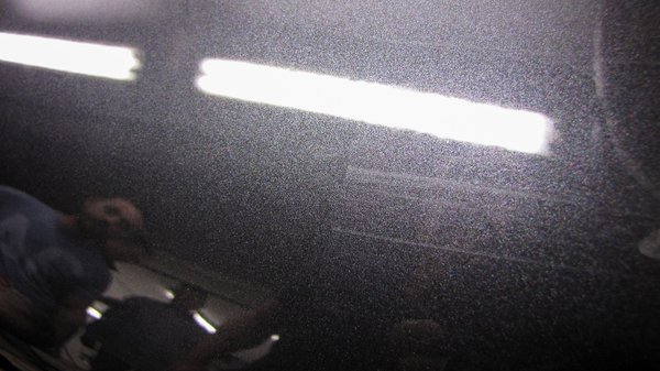 Az alaposan letisztított felületen most már el lehetett kezdeni dolgozni a polírozó szerekkel is. Ilyenkor egy igazán alapos autókozmetikás megméri a kocsi lakkrétegének a vastagságát, mert ha túl sok lemattult lakkot lepolíroz, vagy túl mély karcnak ugrik neki, nagyon gyorsan sok tíz, esetleg százezres kárt okozhat. Éppen ezért nem csak a lakkréteg vastagságát kell figyelni nagyon, de néha érdemes a lakk hőmérsékletét is ellenőrizni. Ugyanis kell a meleg, hogy a lakkréteg teteje szépen kisimuljon, de a túlzásba vitt polírozás miatt még a fémlemezen is gyorsan megéghet a bevonat, hát még egy hőre lágyuló műanyag karosszéria elemen – lásd a korábban emlegetett lökhárító-hűtőrácsot.
