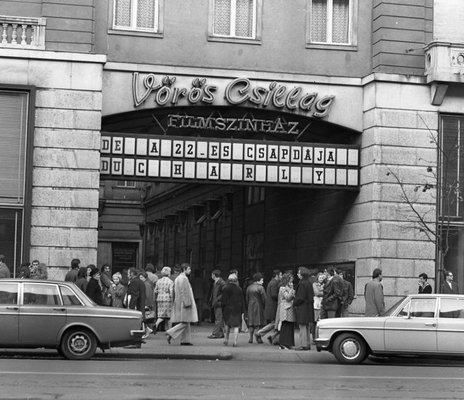 Nem kellett ahhoz Japánba utazni, hogy az ember olyan képet készítsen, amit akár a világ másik végén is kattinthatott volna. Csillogó állólámpás Mercedes, szögletes 200-as 144-es Volvo, világító neonfelirat a mozi bejárata felett, műsoron a 22-es csapdája és a Charly. De ha tudjuk az évszámot, rájövünk, ez a kép nyugaton soha nem készülhetett volna, a Charly-t kilenc, a 22-es csapdáját hét évvel korábban mutatták be – ennyi idő kellett, hogy ezeket nálunk is le merjék vetíteni. És persze a Vörös Csillag sem igazán kapitalista-kompatibilis mozinév...