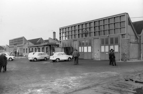 Ebben az évben, amikor a Totalcar Örökös Jádeoszlopa (Balázs a szerkesztőség második legrégebbi tagjaként érdemelte ki a címet) született, ide, a IX. kerületi Táblás közbe hordták márkaszervizbe autóikat a budapesti Trabant-tulajdonosok. Vajon hol lehet ma az a szép Trabant-jelvény és -felirat, ami a két épület homlokzatát díszíti? Csak remélem, hogy nem került az ócskavas-telepre. A Google Earth-ben gyönyörűen látszik, hogy az épületek még állnak, a fűrészfogszerű tetőszerkezet még az űrből is jól kivehető.