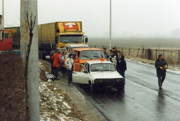 Azt hiszem, ennél jobb képet nem is találhattam volna Rudi születési évéhez. 89-ben minden szocialista országban komoly változások indultak – Romániában konkrétan forradalom tört ki, amink köszönhetően Ceaușescuékat visszavonhatatlanul elmozdították a hatalomból (halott diktátorok csak a legritkább esetekben rendezik vissza a dolgokat). A forradalom hírére sok magyar és külföldi magánember és segélyszervezet indult el Romániába, élelmiszerrel, gyógyszerrel, kötszerrel és egyéb segélyekkel. Egy ilyen konvojt láthatunk, amit természetesen egy Dacia vezet fel, mögötte pedig két, Rudi számára különösen kedves VW Transporter (egy szimpla busz , illetve egy Westfalia )is adományokkal megrakva vár a határátlépésre. Azt nem lehet mondani, hogy 1989 unalmas év lett volna