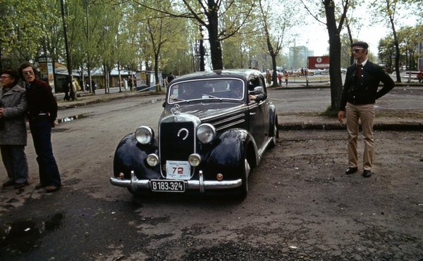 Érdekes, elgondolkodtató kép ez, amin egy osztrák rendszámú Mercedes-Benz 170S autót láthatunk, amellyel az 1979-es Sopron-Balaton Veterán Rallye-n vettek részt. A Rudi által említett T2-es Transporterek akkor még új autók voltak, ma már bőven veteránok, hiszen a legfiatalabb európai gyártású is 36 éves. A képen látható Mercedes 170S típus legöregebb példánya sem volt 1979-ben több mint 30 éves. Mint ha ma egy 1985-ös autót látnánk. 30 év az autóiparban akkoriban valahogy sokkal nagyobb időnek tűnt.