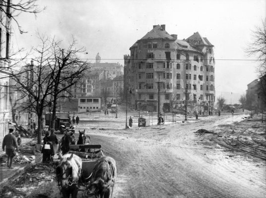Idén már több helyen is megemlékeztek Budapest ostromának évfordulójáról, de sehol jobban, mint az Utolsó Percek Művészete tumbleren. A város megsemmisülése, a zsidók utolsó pillanatban is zajló deportálása és kivégzései, a németek kitörésének hátborzongató részletei, mind olyan részletességgel van leírva a korabeli naplórészletekben, hogy az ember már nem tud ugyanolyan szemmel nézni Budapest egyes utcáira, tereire, mint a visszaemlékezések elolvasása előtt. Így nézett ki akkor a Széll Kálmán (aztán Moszkva, aztán megint Széll Kálmán) tér. A képen lovaskocsi és egy szovjet Zisz teherautó hajt keresztül a napjainkban ismét átalakuló téren, de a kitöréskor ezen a környéken tízezrek haltak meg a nyílt utcákon.