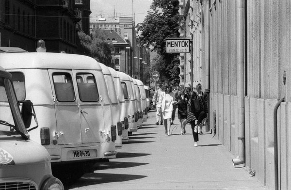 Bár ez a kép Budapesten, a XV. kerületi Harsányi Kálmán utcában készült, nagyjából az ország bármelyik nagyobb telepén kattinthatott volna a fotós, legfeljebb az Ikarus nem kék, hanem sárga-fehér, esetleg piros-fehér lett volna. Akkoriban a furgon Nysa vagy Zuk volt, esetleg Barkas – a típusokat ismerve, érthető okokból a száguldozó fehér furgonos sofőrök fogalma még nem volt ismert nálunk-, a téeszek vezetői, magasabb beosztású állami tisztségviselők pedig Volgákkal jártak.