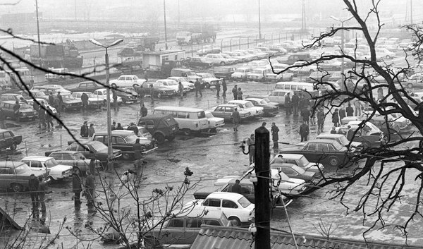 A Röppentyű utcában volt a Merkur használtautó telepe. Ide kerültek az állami cégek által leselejtezett, leadott járművek. Márkakereskedések nem voltak akkoriban, az egyetlen új autó forrás a Merkur volt, de a hosszú sorban állás miatt (évekig kellett várni egy új kocsira) a használt piac egészen furcsán működött, használtautó-kereskedések sem voltak. Akkoriban egy Lada olyasmi befektetés volt, mint ma egy Ferrari: megveszed, évekig használod, aztán legalább annyiért, vagy drágábban eladod, mint amennyiért vetted. (A sors érdekes húzása, hogy mikor ezt a képet nézegettem, még nem volt fent a Fortepanon az a fotó, amin konkrétan egy Ferrari áll a Röppentyű utcai telepen, és a legelső fortepanos anyagban Karotta születési événél már szerepelt. Vajon akkor Ferrarit vásárolni Budapesten, volt olyan jó befektetés, mint új Ladát venni?)
