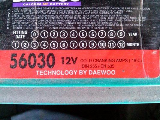 Bár akitől vettem, minden momentumot lejegyzetelt, ami a Toyotával történt, az akkucserének nincs nyoma. Így utólag nem volt visszafejhető, hogy mikor kerülhetett bele a zöld Daewoo-akku, ezért merek csak 7,5 évet feltételezni róla. Még az sem tuti, hogy Dél-Koreában készült, csak annyit írtak rá, hogy Daewoo-technológia.