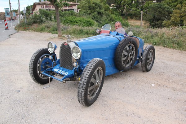 Aztán még az is kiderült, hogy a Bugatti nem túl régóta az övé, igazi versenyautó, valamelyik régi Grand Prix-n is rajthoz álltak ezzel a kocsival, illetve hogy a negyvenes években valahol Svédországban versenyeztek vele – szöges gumikkal, jégversenyeken. És hogy az a kis aranyos, madzagon lógó, láthatóan nem ma faragott kis fa ék mire való: azzal lehet behúzott állapotában rögzíteni a fékkart.
