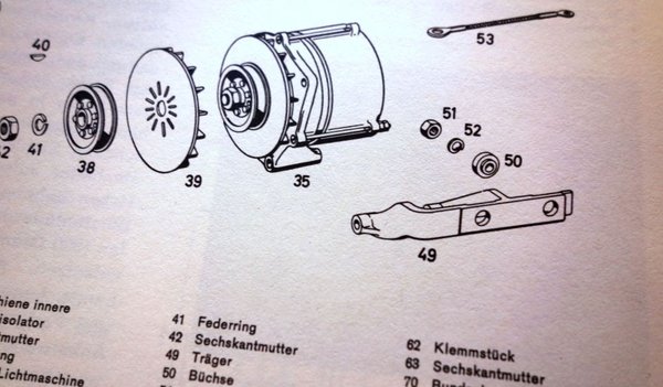 A probléma ugye, az volt, hogy az én korai fajta blokkomra valaki a régmúltban a késői fajta 115-ösre, illetve a 123-as szériára is való generátorállványt tett. Logikusnak tűnhetett akkor a váltás, mert a 111-es, 108-as, 114/115-ös szériára egyaránt jellemző, bennfentes zsargon szerint „rezgős” felfogatás nem szép látvány működés közben, ugyanis a generátor itt azt teszi, amire utal a név is: rezeg. Egészen addig teszi ezt, amíg el nem törik vagy a kitámasztó pálca, vagy a generátor füle, vagy az alsó tartóbak – ahogy ez több típustársammal megesett, illetve velem is megtörtént 2002-ben, Hollandiában. Azóta tudom: nem kellemes egy világörökségi városka díszburkolatán parkolva, holland matyóhímzésbe öltözött nénék szörnyülködése közepette felesleges szerszámokból és AWAB-bilincsekből generátorállványt tákolni...