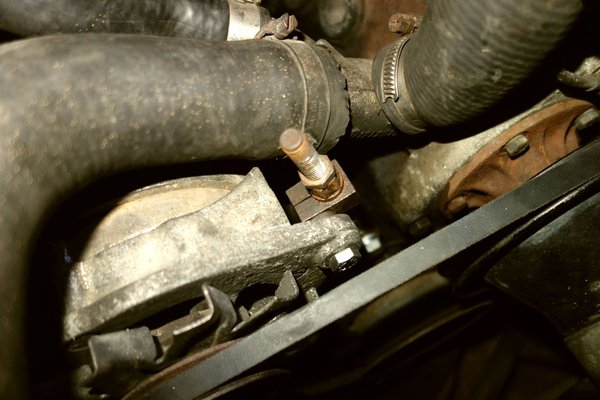 Oké, tehát mehetett fel a generátor, s a próba tökéletesen sikerült is. Akkor jöhet a pálca. De hova való? Valamiért úgy rémlett, hogy a hengerfejben szabadon levő csavarfuratok egyikébe – ám onnan nagyon hülye szögben érte el a generátort, szinte beleszúrt a palástba. Alatta viszont ott a vízpumpa nagy tömbje, pici csavarkákkal, azok közül egyik se bírja el.