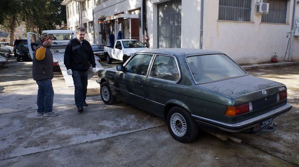 A cégtulaj fia széles mozdulatokkal terelt a fedett tároló felé, ahol a kiscápám várt rám. Vastag porréteg, félig lapos gumik ontották az őszinteséget. Beültem, alánéztem, kinyitottam a gépháztetőt, azonnal tudtam, hogy a BMW jön velünk. Ha rosszabb állapotban lett volna, akkor is megveszem. Három helyen találtunk középsúlyú rozsdát: az akkumulátortálca sarkán, a csomagtérpadlón (messze nem szita, csak barnul) és a doblemezen átvezetett gázcsövek környékén.