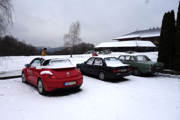 Egyetlen vigaszom a konstans fejfájásban, hogy a hűséges Foltossal jöttem, mellettem és mögöttem Rézmányi, Zomborácz és Sturcz kollégákkal. Az öreg Merci láthatóan boldog, hogy ennyi embert szállíthat, s ennyi friss levegőt szívhat. (Legalábbis elöl, mert hogy hátul mi jön ki belőle, az más tészta.)