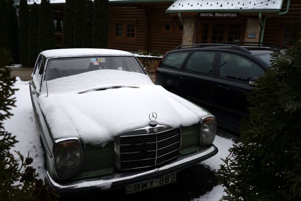 A sokak által szerintem jól ismert, kiváló, egyszerre viszonylag takarékos és erős, 136 lovas, befecskendezős 2,3-as benzinmotor hajtja, mellesleg az autó automataváltós, ABS-es, bőrüléses, sok egyéb extrás. Igazán megéri, a benne levő kilométerenként egy eurót kérnek érte (látják, ezért jó, hogy ilyen keveset futott), 24 500 az ára. Csak a dániai Horshølmig kell érte menni. Hoztam én már messzebbről is kiváló Mercedest, hóban.