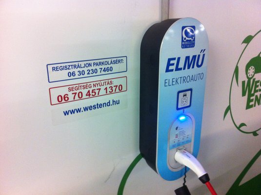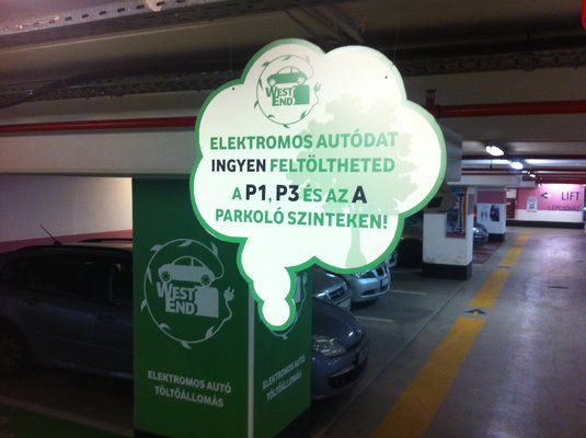 Még szerencse, hogy Balázs, aki az egész ötlettel eredetileg előállt, még korábban mondta, hogy van valami töltési lehetőség a WestEndben is. Ami ide egy ugrás, ki kell próbálni. A WestEnd mélygarázsában azonnal megtalálom a töltőt, ami üres. Csak be kell dugni a csatlakozót és máris tölt. Töltene, de nem tölt, igaz, világít az oszlop visszajelzője, meg a kocsin is az egyik kék lámpa. Hamar leesik, hogy olvastam valamit a programozott töltésről, meg a kapcsolóról, amivel azonnal kiiktathatom a programot. Megnyomom, és tölt. HALLELUJA! Még a töltés közbeni, programozott fűtést is bekapcsolom, melegítse csak föl a kocsit, amíg elmegyek nézelődni.