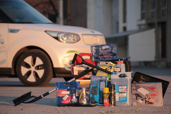 Aztán kell egy rakás cucc az autóhoz. Először is egy bőven 10 Amper felett tudó hosszabbító – igaz, ilyet elvileg nem illik használni a hálózati töltőhöz, de van az úgy, hogy nem az számít, mi illik, hanem hogy mi kell. Aztán láthatósági mellények, egy masszív vontatókötél, hólánc, esetleg fújható hólánc, jégoldó, jégkaparó, egy masszív hókefe. Erős túlzás lehet a hólapát, de inkább beteszek egyet, kis helyen is elfér a szétszerelhető verzió. Zárolajzó-jégoldó egy ilyen modern autónál nem szükséges, kulcs nélkül nyit-zár mindent, de ha már a kezembe akadt, eltettem egyet. Téli szélvédőmosót mindenképp viszünk pár literrel, a német vagy osztrák kúton nagyságrendekkel drágább, mint itt egy autósboltban. Ha nagyon spórolunk a fűtéssel, és a beáramló hideg levegő útját elzárjuk a belső légkeringetéssel, könnyen elkezdhet az autó párásodni, egy csomag páramentesítő kendő hasznos lehet. Ha kilyukad valamelyik gumi, jól jöhet a fedélzeti defektmentesítő mellé egy defektjavító, mert az Murphy, hogy a defektet ilyenkor egy másik fogja követni. A tréler pedig itthon sem olcsó mulatság, hát még külföldön. Ha esetleg le kell szedni a kereket, leggyorsabban egy elektromos kerékkulccsal lehet, a leállósávban minden másodperc számít.