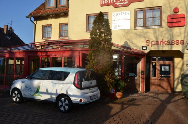 Mire visszaértünk a kocsihoz, szépen megszívta magát nürnbergi árammal – igaz, nem száz százalékig töltött, de a 110 kilométeres hatótáv bőven elég a szállásig és vissza. Holnapra elvileg el lett intézve a töltés (de most már tényleg), aztán este nyolcra villámtalálkozót szervezünk a Nürnberg környéki olvasóknak – akit érdekel a villany Soul, ami saját lábon jutott el Nürnbergig, jöjjön! Ennél a töltőoszlopnál lesz a míting, gyertek sokan!