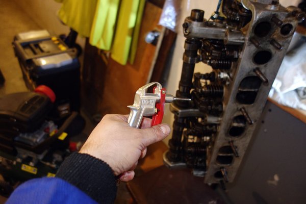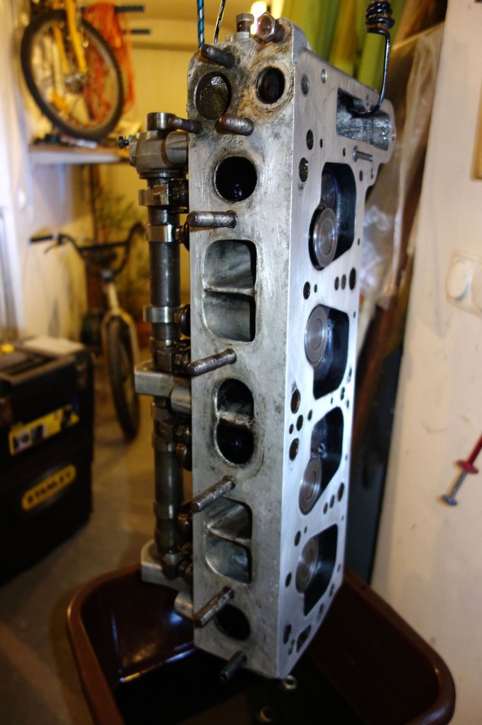 A nyüves darab alumíniumot, benne az összes gyanús, idegen elemmel végül vagy két és fél órát pucoltam Brigéciolban. Nem a belemerítős módszert használtam, mint fiatal koromban, mert az lassú és visszaviszi a koszt a kipucolt területekre, hanem gumipókon fellógattam a tömböt, és egy kiszuperált ablakspricnivel locsoltam, miközben elsősorban fogkefével, takarítottam, de volt ott ecset és csavarhúzó is a processzben, alatta meg egy vájdling felfogta a lefolyt Brigéciolt, újrahasznosításra. Gyönyörű lett, miután a kompresszorral kifújtam mindent, a hengerfej porszáraz és tiszta lett – én meg a szétfújt párától rettentő koszos és büdös. Sebaj, nem én lakom majd a motortérben, garantálva a 7,0:1-es kompressziót, hanem ő...