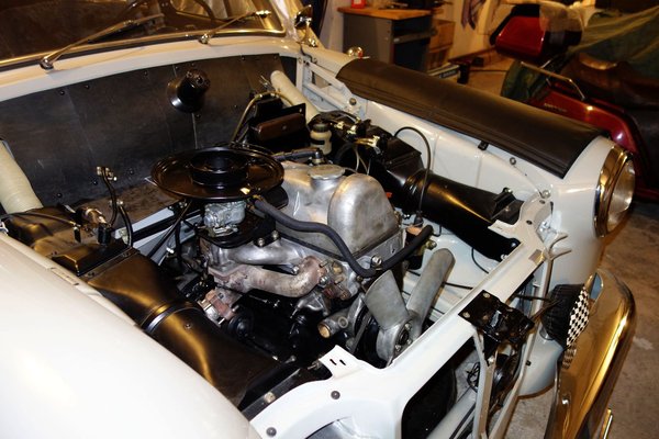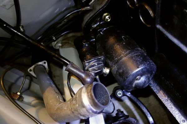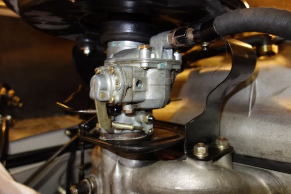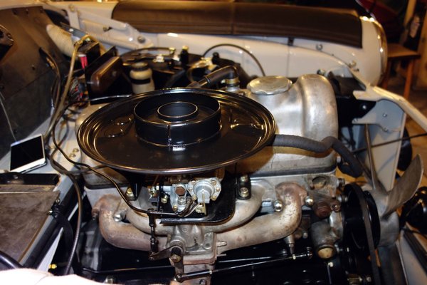 Még a gyújtáselosztó vákuumcsövét is áthúztam a motor mögött, a karburátorba való rögzítődarabot pedig elláttam menetrögzítővel, mert a fele se tréfa, ha ott kitépi a menetet. Ennek a csőnek még ki kell találnom valami rögzítést, mert így nem lifeghet szabadon... Légszűrőház is felment, de magát a szűrőt és a fedelet nem teszem fel, mert indításkor itt majd matatni kell a benzines fecskendővel, ha nem akarom legyilkoni a frissen rendbe tett indítómotort.