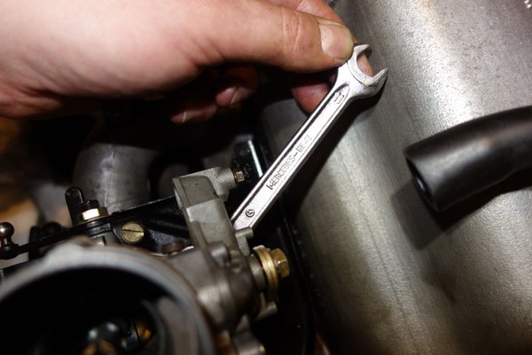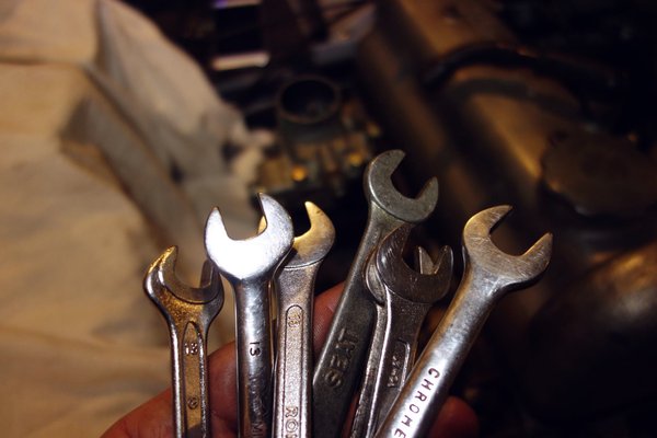 Repkedtek fel a segédberendezések, a masszív, merev benzincső, a még tavaly, általam újjáépített karburátor és tálcája. Hoppá, ezt mindig is nehéz volt meghúzni, mert a belső anyájához nem fér hozzá rendesen kulcs, most is hasonlóan jártam. Előszedtem az összes 13-as villást, amim van otthon, s végigpróbáltam, vajon melyikkel sikerül. Na melyik lett a befutó? A Mercedes-Benz feliratú Heyco. Höhö. Höhöhöhö...