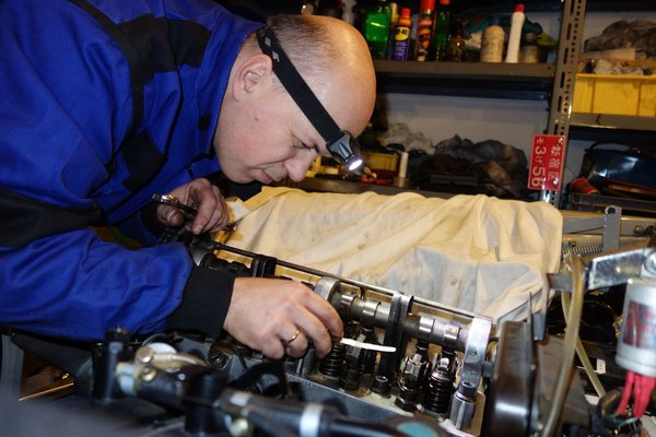 1-3-4-2: a négyhengeres motor gyújtási sorrendjét aki nem tudja álmából felébresztve is felnőtt korára, az inkább ne piszkáljon ilyen dolgokat. A high-lever júzerek a sorhatosét, a pro-levelesek a nyolchengeresét is vágják, nekem ahhoz nincs agyam. Kétszer végigmentem a hengereket, körbeforgatva a főtengelyt. A Mercedes szelephézag-állítása elég kretén – ezeknél a motoroknál a vezérműtengely felülről nyomja a himbát, s nem a himbában levő csavart állítod a hézag belövéséhez (majd rögzíted kontraanyával), hanem azt a csavart tekergeted, amelyikre az egyik végén támaszkodik. Itt nincs is kontraanya – a csavar annyira szorul tőben a hengerfejbe, hogy el nem fordul magától, annyi szent.