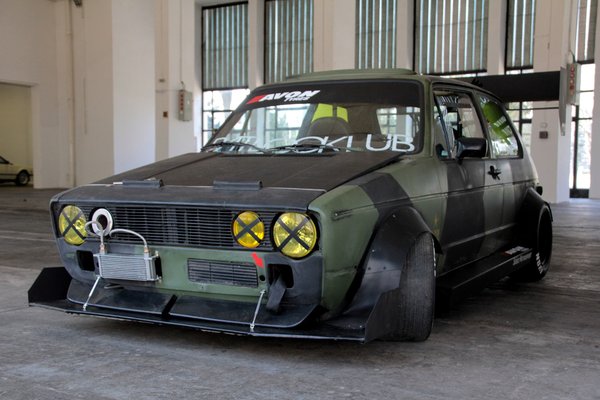 Ez a svéd, vagy milyen álcafestésű Bosozoku-Rat egyes Golf például eddig a kedvencem. És annyira jól néz ki, hogy nehéz lesz másik kedvencet találni. Na jó, az amerikai kisteherből kendácsolt lakósufni is nagyon ott van, akármikor beülnék, aztán irány a nemzeti parkok, Maci Laci és az örökösen megdurrantott uzsonnás kosarak világa.
