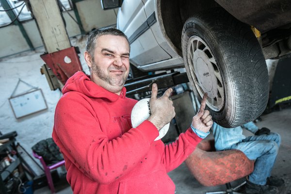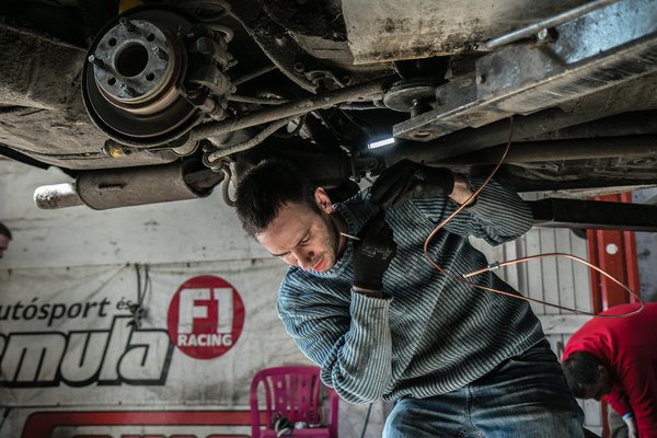 Nem akarom túlzottan bő lére ereszteni, a lényeg az, hogy nagyjából tizenegy óra körül kezdtünk neki mindennek és délután ötkor már pályán volt a kis Pisztoly. Bandival élvezet együtt dolgozni, aránylag jó tempót tudunk futni és eléggé összeszoktunk. Remekül befűzte a kéziféket, aztán ki, mert kicsit fordítva kötöttük be, de alig 20 perc múlva már légtelenítettünk és konstatáltuk, hogy hibátlanul sikerült a művelet. Sosem volt ilyen jó dolgunk, Bandi fotelből szerelt, egyszerűen eddig lehet emelni az autót, aztán itt az a mondás, hogy ne szakadjon meg az ember a munkában, mert aztán nem bír vezetni. Nem mondom, hogy okvetlenül sokat áldoztunk volna a munkavédelem oltárán, de nincs férfiember szembe pattant spén nélkül, ezúttal megúsztuk sőt, a végén még egy gyors futómű-beállításra is maradt ideje Bandinak, mialatt én elpakoltam a cuccot a Galantja hatalmas fenekébe.