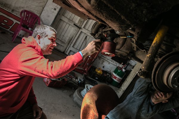Aztán küldtük neki, ahogy kell, a kis vacak pedig ment, tette a seggét, tökön-paszulyon, neveddelagázt-módon, hamar ledurrantottunk róla két garnitúra gumit és éreztük, hogy úgy kellett már ez a hidrós kézi, mint egy falat kenyér. Az új kitámasztórudak szilárdan tartották a hidat, pontosan és finoman vezethetővé vált az autó, persze mi nem voltunk túl finomak és a végén csak sikerült ugratnunk egy akkorát, hogy egy pillanatra az autó mind a négy kereke a levegőben volt, majd nagyjából fél méter magasról a kitekert jobb első kerekére érkezett. A lökhárító leesett, de lejött lábon, pedig a kormányösszekötő eltört, mint a ropi, a kormánysegédkar is elhajlott és valószínűleg a gátlószár is. Ha lett volna nálunk másik, akkor simán visszamentem volna, így csináltunk magunknak programot a legközelebbi alkalomra is. Nincs para, egyszerű ez, mint a faék, megnyalogatjuk sebeinket és toljuk tovább.