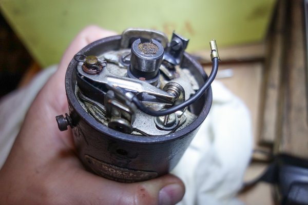 Régebben részletesen megírtam, hogy már a harmadik elosztó van a kocsiban – az eredetije, amivel vettem, egy aluházas, állólámpásba való, idegen cucc volt, aztán a német Fecske-klub elnöke hozott egy régi fajtát, vasházasat. Bár előre mondtam neki, hogy nekem egy VJUR BR28 kell, ő egy BR27-et hozott, mondván, az is jó lesz. Hát, nagyon nem. Nem akkorát és nem ott szabályoz, ráadásul a konkrét példány tengelyéből valami butaság miatt leköszörültek, ezért táncolt rajta a rotor. Tehát kisebb vagyonért beszereztem egy BR28-ast Amerikából, amiben ugyan elég sok rossz alkatrész volt, de azokat az előzőből jól át tudtam menteni. De most elkezdett nőni bennem a gyanú: ennek meg lötyög a tengelye.