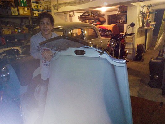 Betettem hát a gyertyákat. Bálintot a kormány mögé ültettem, s tekertettem vele még egy kicsit, hogy biztosan jó legyen az olajnyomás az indítás pillanatában – én közben mindent összeszereltem a gyújtáson. Egy fújásnyi Artica a karburátorba, be a gépész helyére, kulcs elfordít, gomb nyom – és pöffen! Nem indul persze, mert a gyújtást csak szemre tettem be, de ember! Életjelek! Higgyék el, egyévnyi szerelés (oké, tudom, hézagos), hitvesztés, halvány reménykedés, újbóli csüggedés után az ember már egy halvány pöffenéskének is nagyon tud örülni. Hát még háromnak.