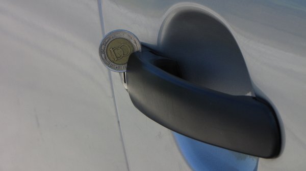 Összesen kilenc autón próbáltam ki az állítólagos trükköt. Csak annyit kell csinálni, hogy a bezárt autó utasoldali ajtajánál a kilincset elfeszíti az ember egy pénzérmével – esetemben egy százassal. A kilincs kvázi a hóna alá szorítja az érmét, majd jön a tulaj, kinyitja a központi záras autót. Természetesen az utas oldal is nyílik, az autóval elhajtunk, intézzük a dolgainkat. Hogy a csibészek követik-e az embert, vagy csak megvárják, míg este hazaérek, arról nem szól a sztori, de a lényeg az, hogy amikor a távirányítóval, vagy a kulccsal bezárom az autót, az utasoldali zár nem zár, a befeszített érme miatt nyitva marad. És innentől pillanatok alatt be lehet nyitni az autóba, vihetik a laptopot, a napi bevételt, vagy akár az egész kocsit. Ijesztően hangzik, ugye?