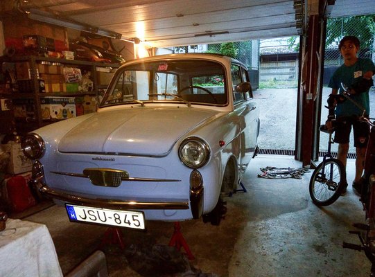 Sanyi barátom is jelentkezett, a világ legjobb karosszérialakatosa, aki tényleg bármit legyárt bármiből, csak fémlemezről legyen szó, s olyan veteránautók elkészítésében volt már benne a keze, amiket el se akarok hinni. Vigyük el az ő gumisához, annak van szerszáma, így kerültem Pesterzsébetre.