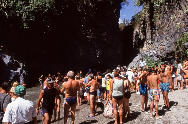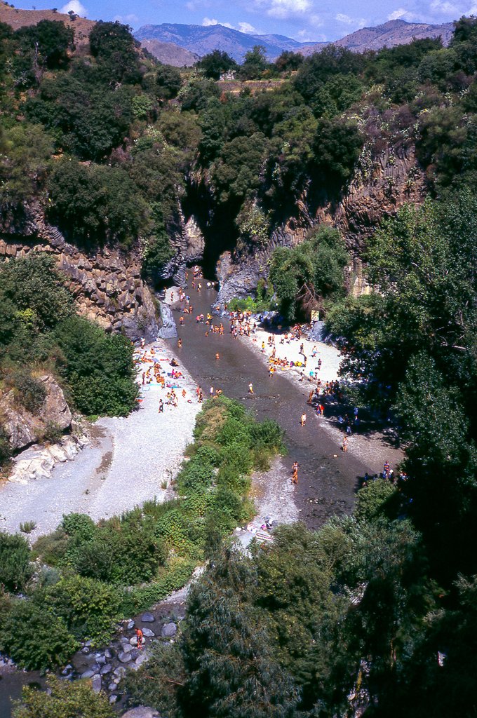Tovább Agrigento felé, ami számomra a legérdekesebb hely Szicíliában, mert egyszerre van ott görög, római, etruszk és normann kultúra, sőt, egy nagy darab középkori Olaszország is, tehát térdig jár az ember a történelemben, borzasztó érdekes. Nem mellesleg a tenger is finom arrafelé, nagyok a hullámok, szóval Agrigentót nem lehet kihagyni. Még odaúton szerintem benézünk Gole Alcantarába is, ami egy kábé négy méter széles és sok kilométer hosszú, alján jegesen hideg patakkal csörgedező hasadék egy hatalmas hegyben – óriási élmény.