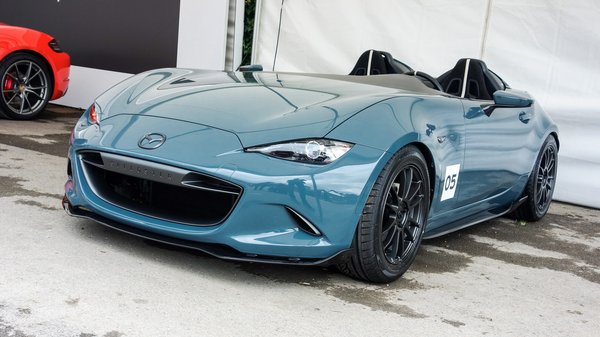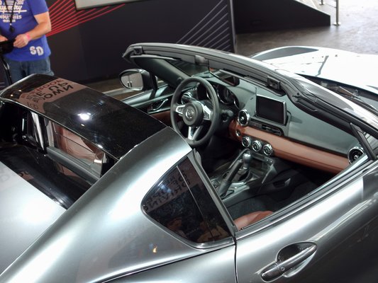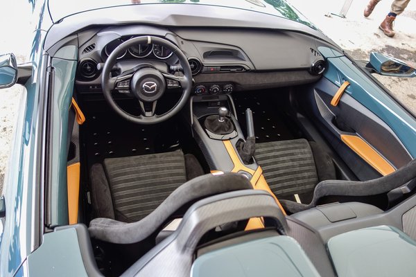Egyik ezek közül a tető és szélvédő nélküli, szénszálas ajtókkal és ülésvázakkal szerelt, 16 collos RAYS-kerekeken guruló, három centivel megültetett, kemény versenyautóvá átépített MX-5 Speedster, amely prototípus és egyelőre semmi jele annak, hogy akármilyen kis darabszámban készíteni akarnák mindenféle elnehezült pénztárcák tulajdonosai számára. Pedig tényleg olyan, de nagyon, nyál csorog literszám.