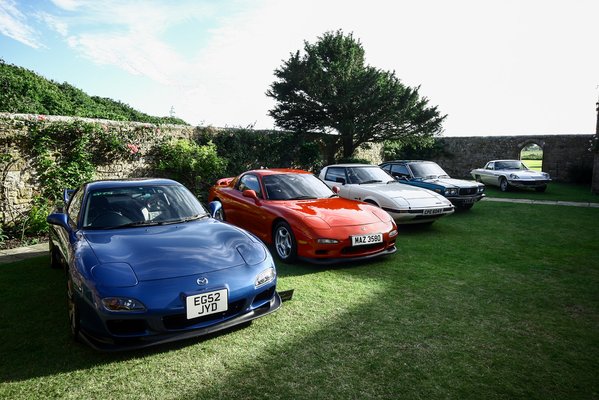 Itt történt, hogy a helikoptertől egyenesen egy ódon vidéki kúria kertjébe gyalogoltunk (igazából 1920 táján építették, már akkor turisztikai célzattal), ahol az összes jelentős Wankel-motoros modellt kiállították Cosmo 110S-től RX-3-ason át, több generációnyi RX-7-esig.